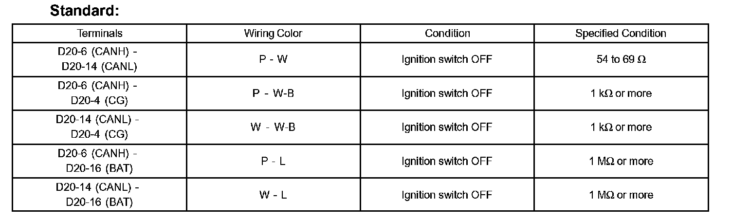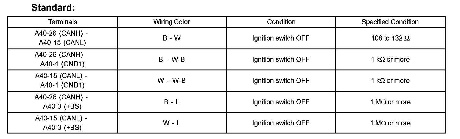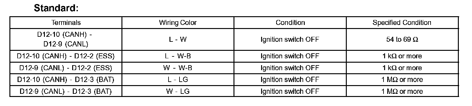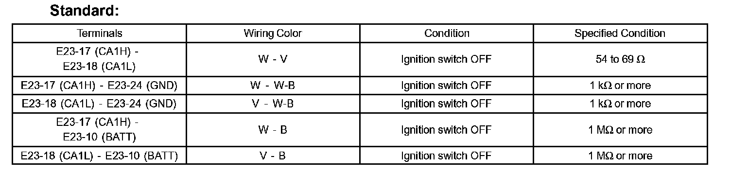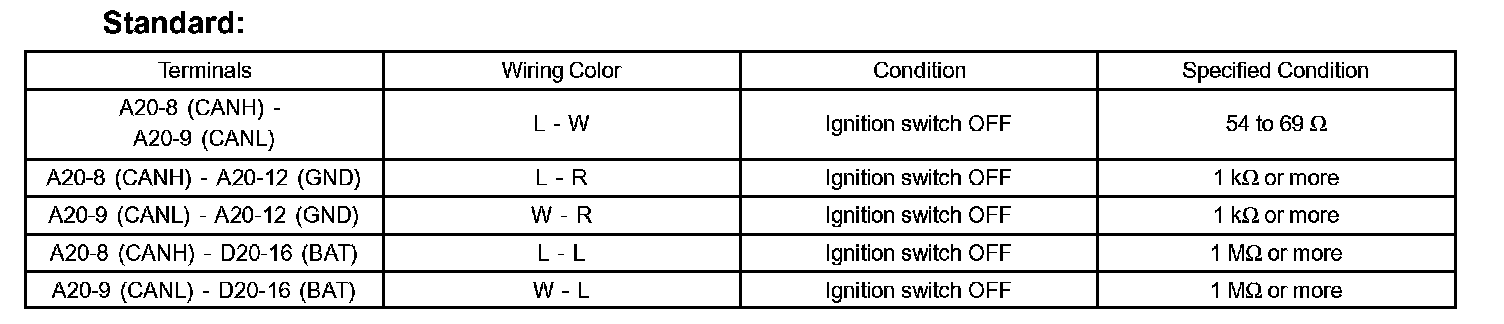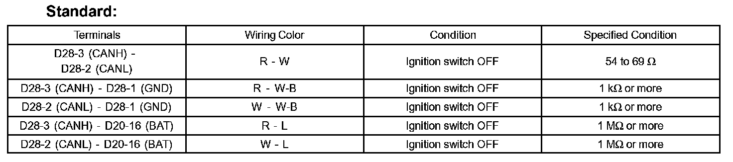 TERMINALS OF ECUHINT: This section describes the standard CAN values for all CAN related components.