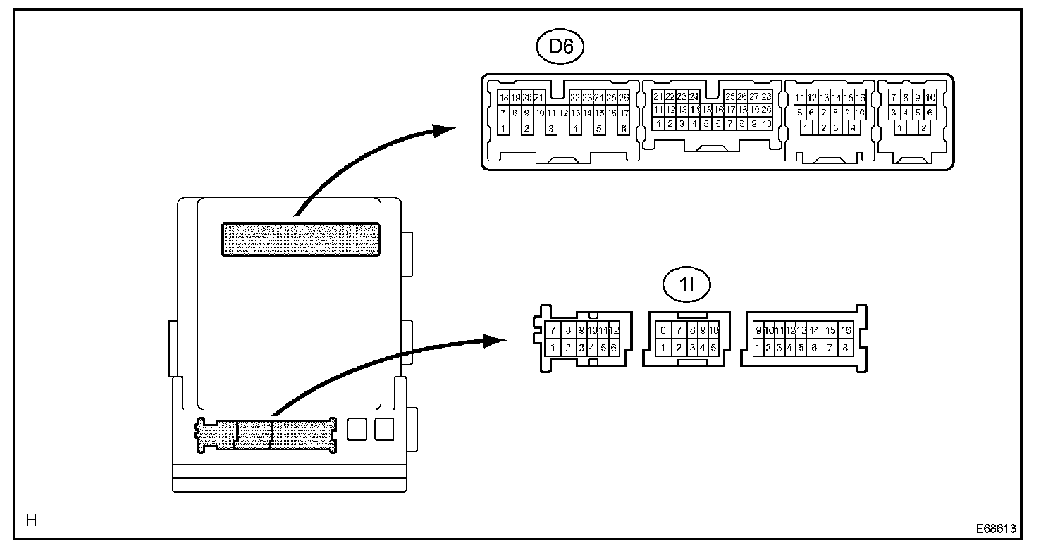 a. Disconnect the 1I, 1A, 1F, 1M, 1R and D6 ECU connectors.