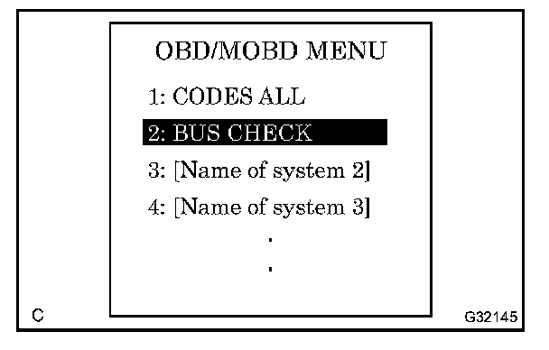 a. Select "BUS CHECK" from the "OBD/MOBD MENU" screen.