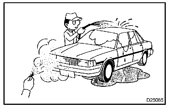 - Never sprinkle water directly into the engine compartment. Indirectly change the temperature and humidity by applying water spray onto the front of the radiator.