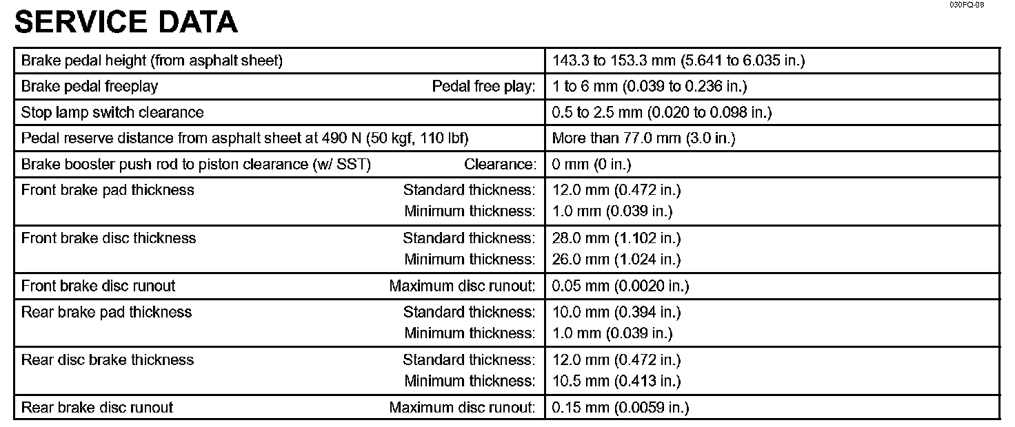 Brake - Service Data: