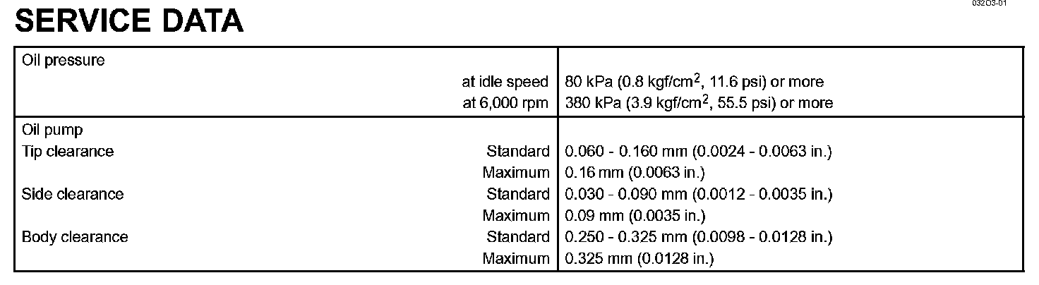 Lubrication - Service Data:
