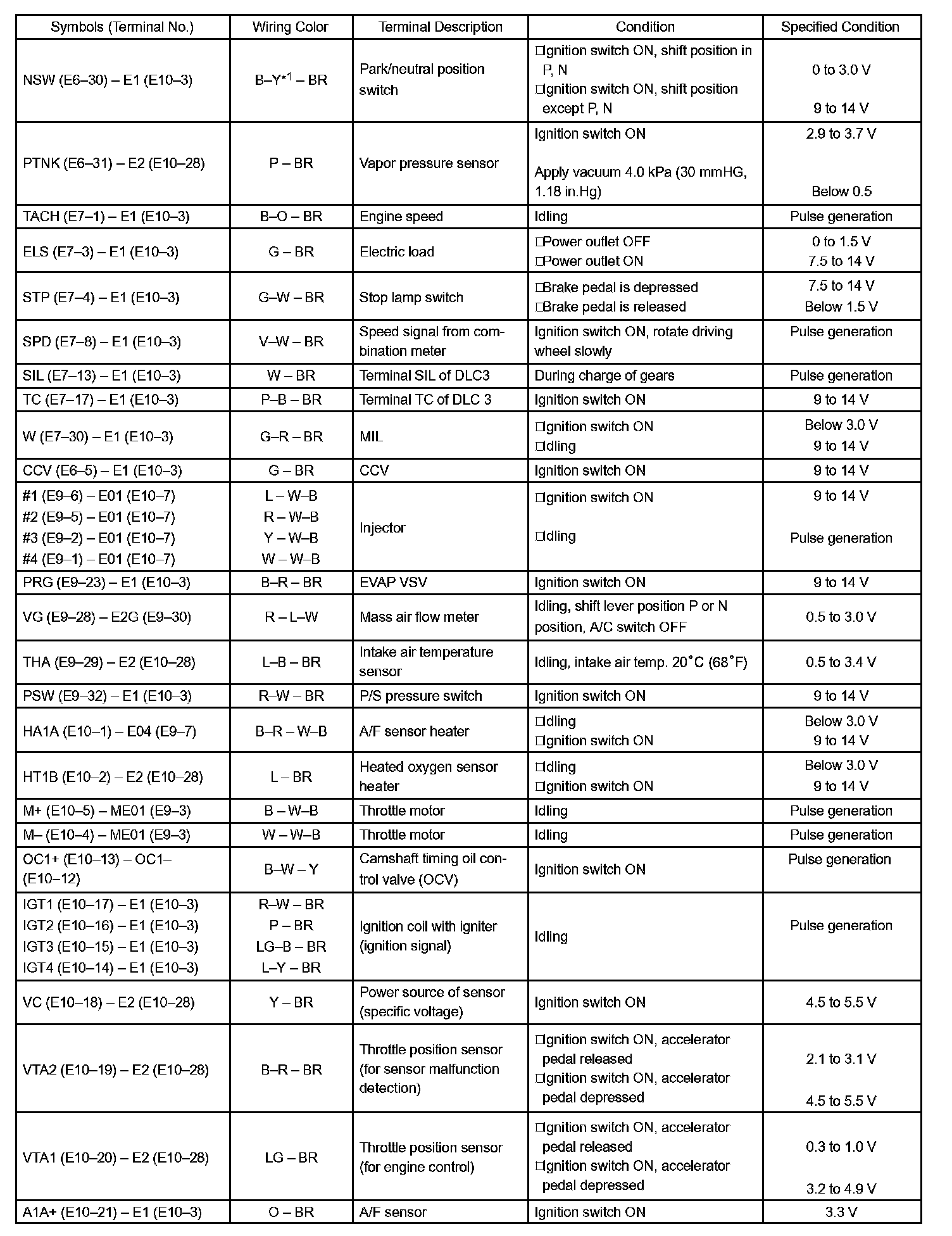 Pinout Values and Diagnostic Parameters