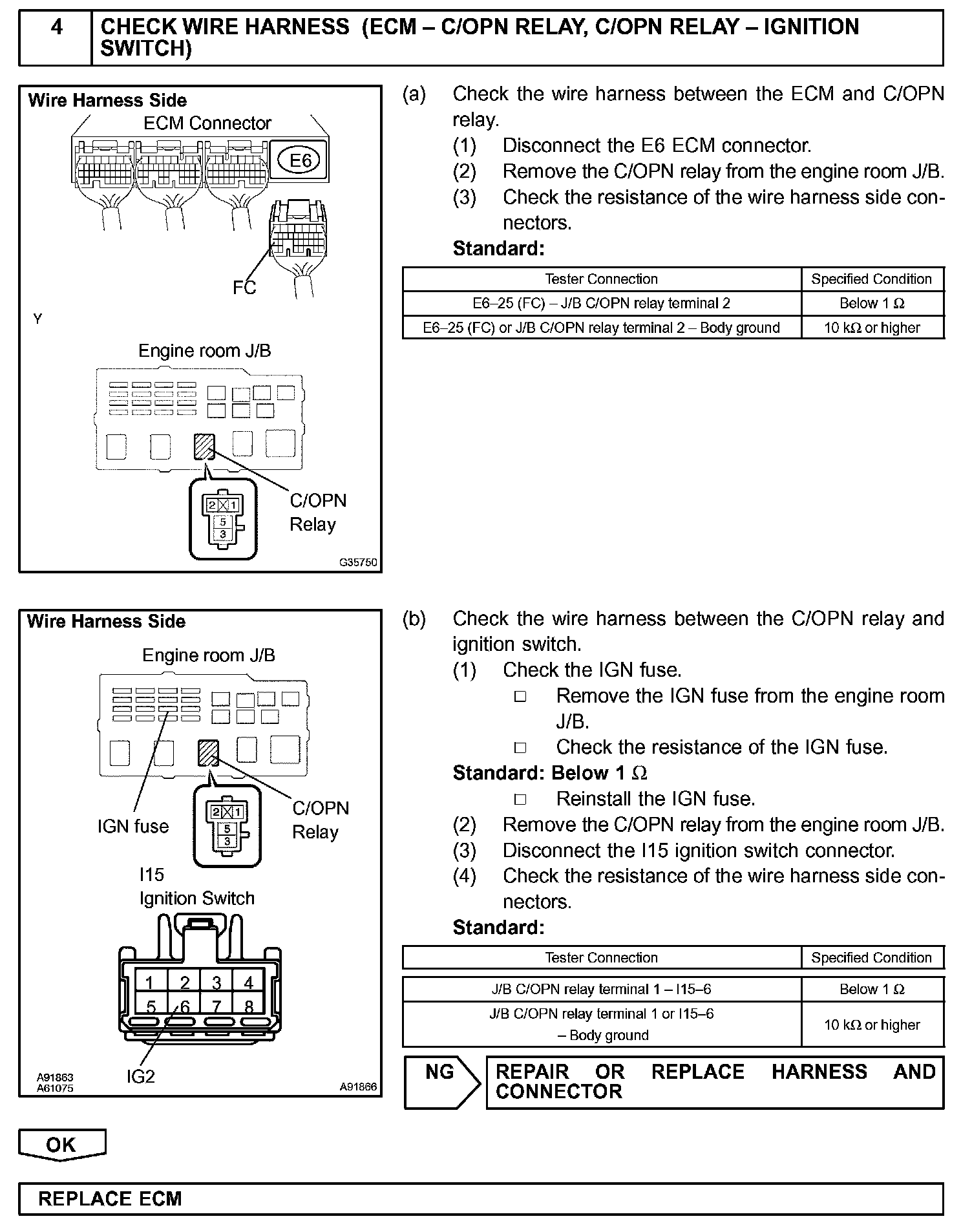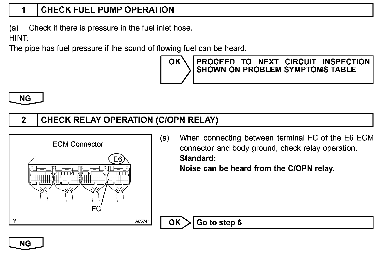 While the NE signal is generated and the engine is running, the ECM keeps Tr ON (C/OPN relay ON) and the fuel pump also keeps operating.