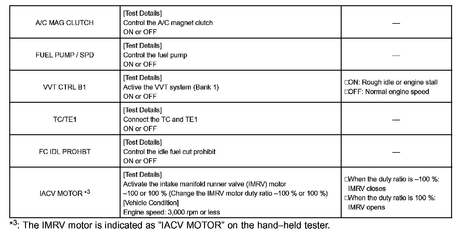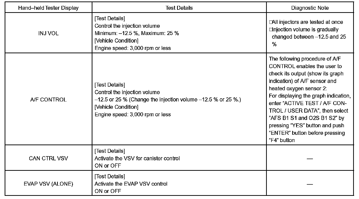 ACTIVE TESTHINT: Performing the hand-held tester ACTIVE LIST allows relay, VSV, actuator and other items to be operated without removing any parts. Performing the ACTIVE LIST early in troubleshooting is one way to shorten labor time. The DATA LIST can be displayed during the ACTIVE TEST.