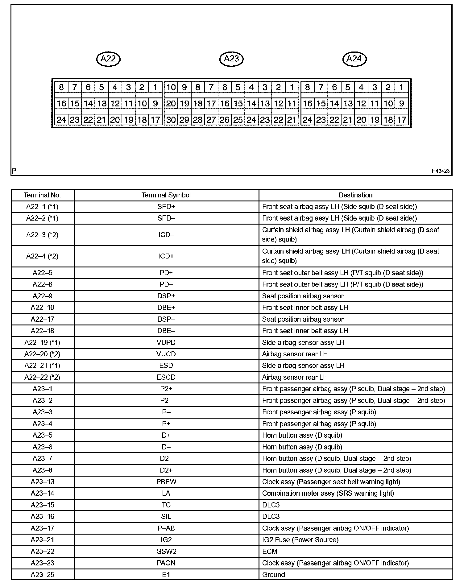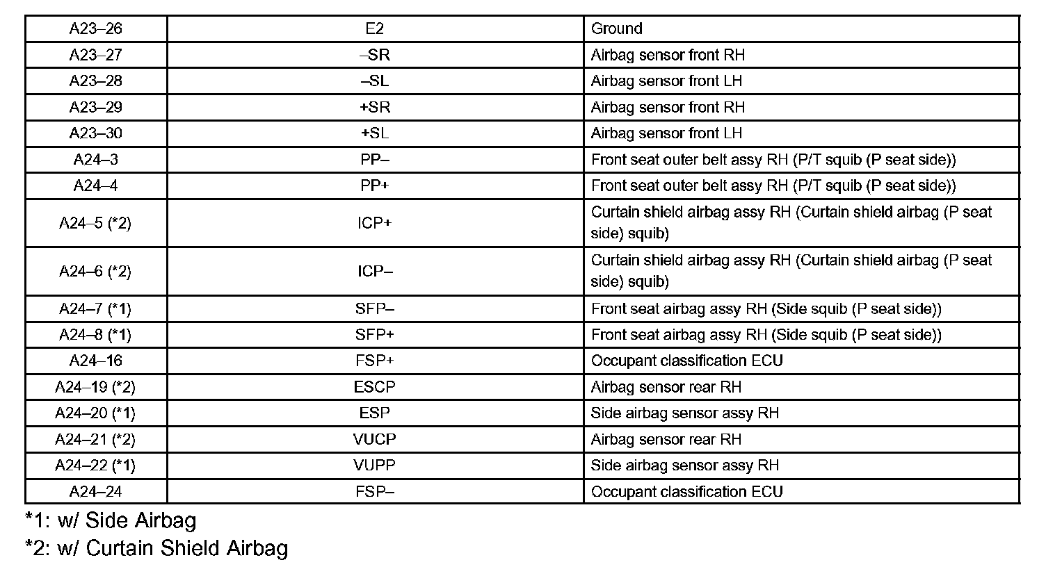 Terminals Of Control Module/Pinouts - Airbag Sensor Assy Center Part 2: