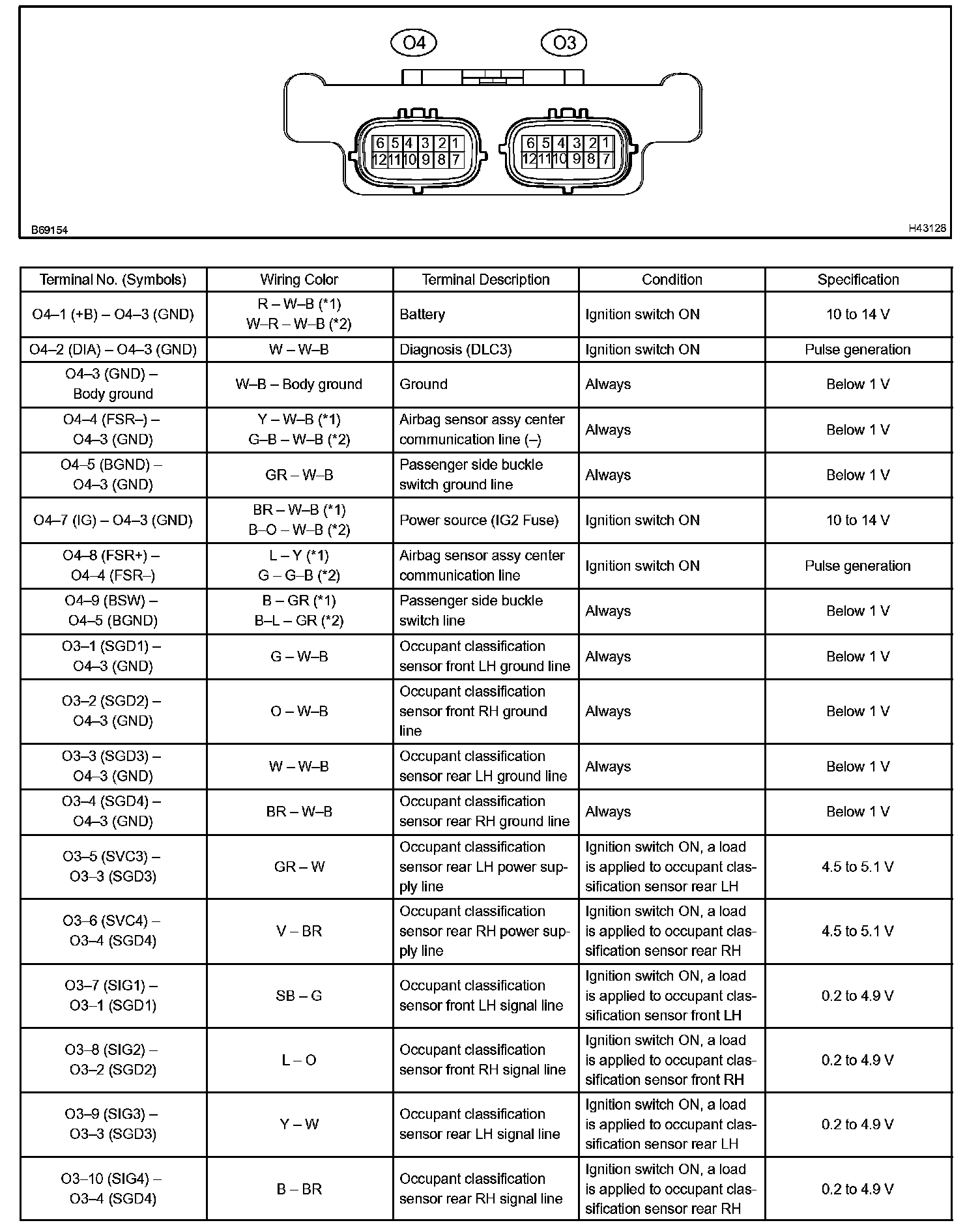 Terminals Of Control Module/Pinouts - W/o Power Seat: Occupant Classification ECU Part 2: