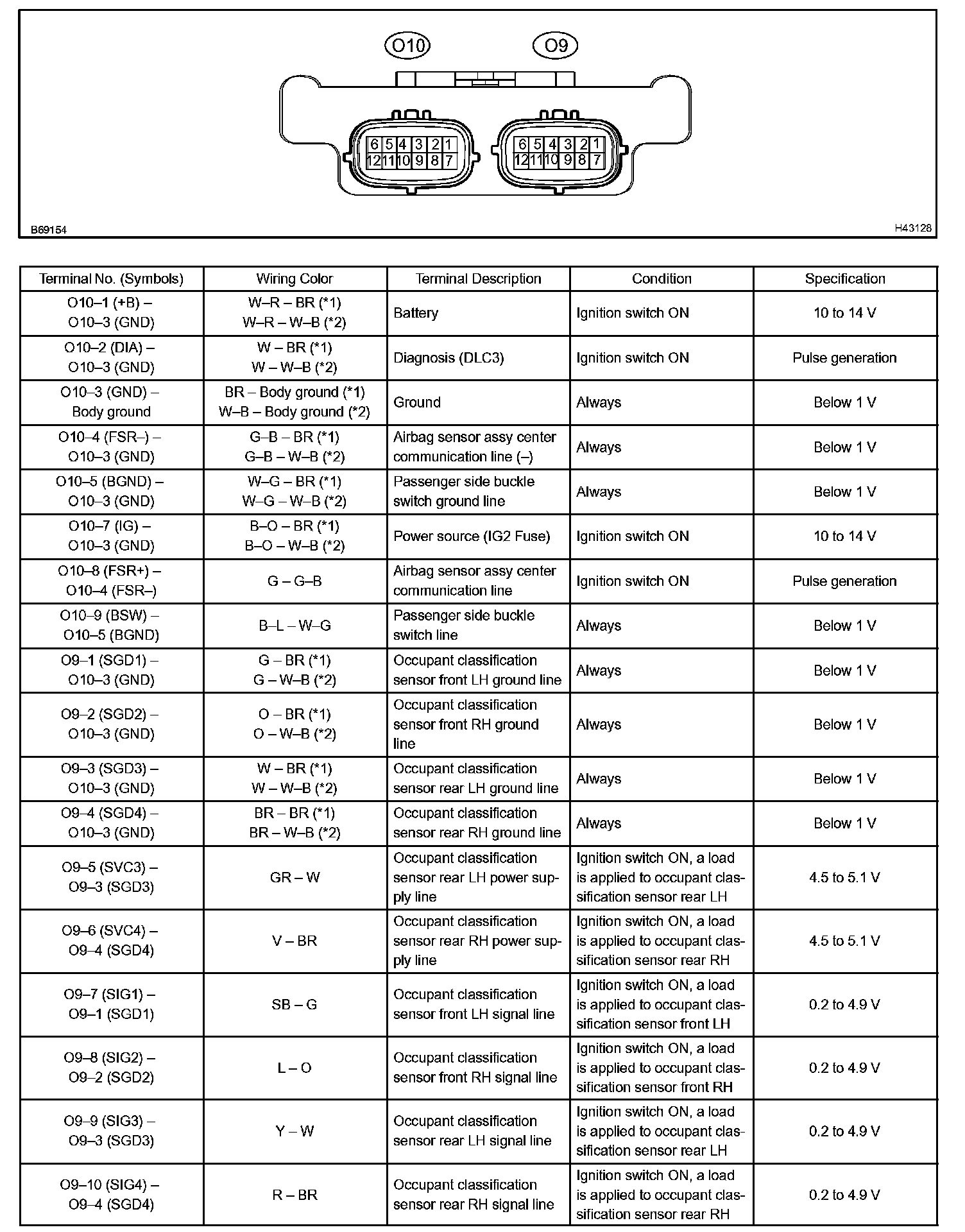 Terminals Of Control Module/Pinouts - W/o Power Seat: Occupant Classification ECU Part 1: