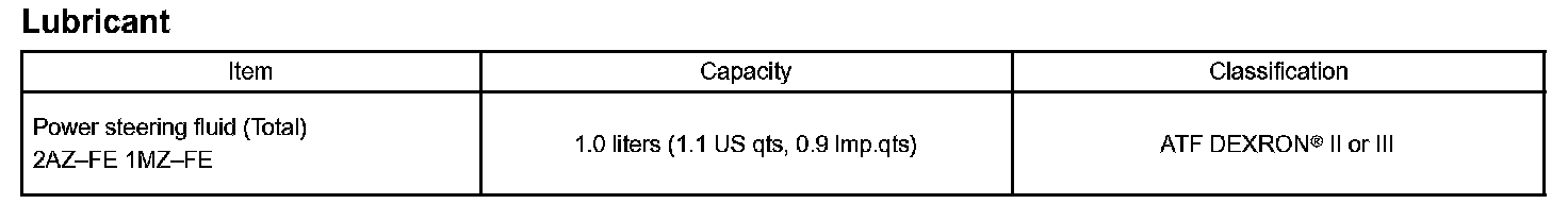 Power Steering - Lubricant: