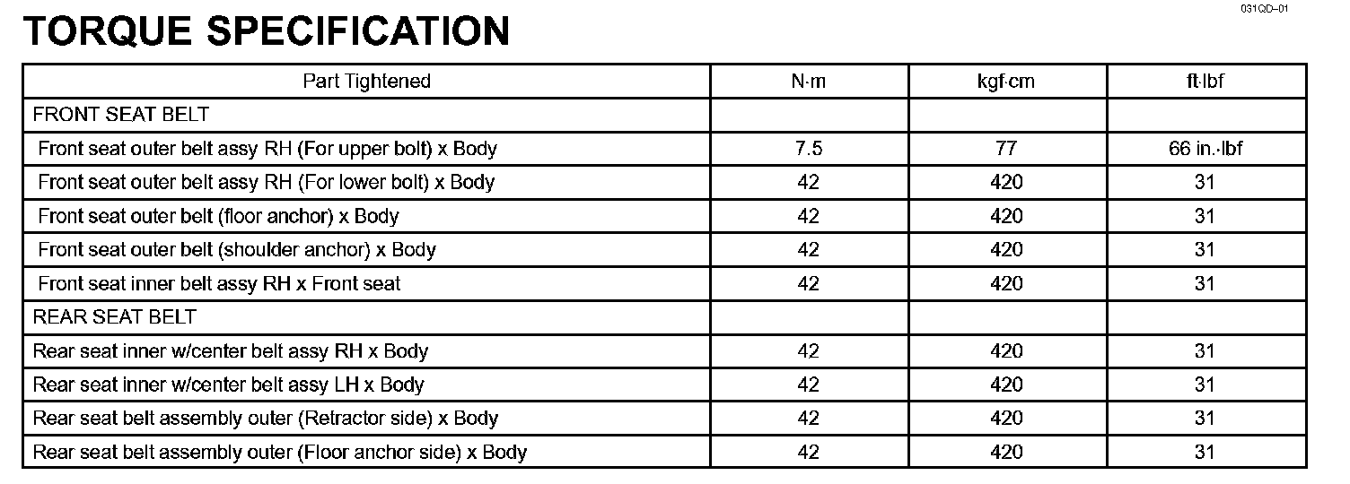 Seat Belt - Torque Specification: