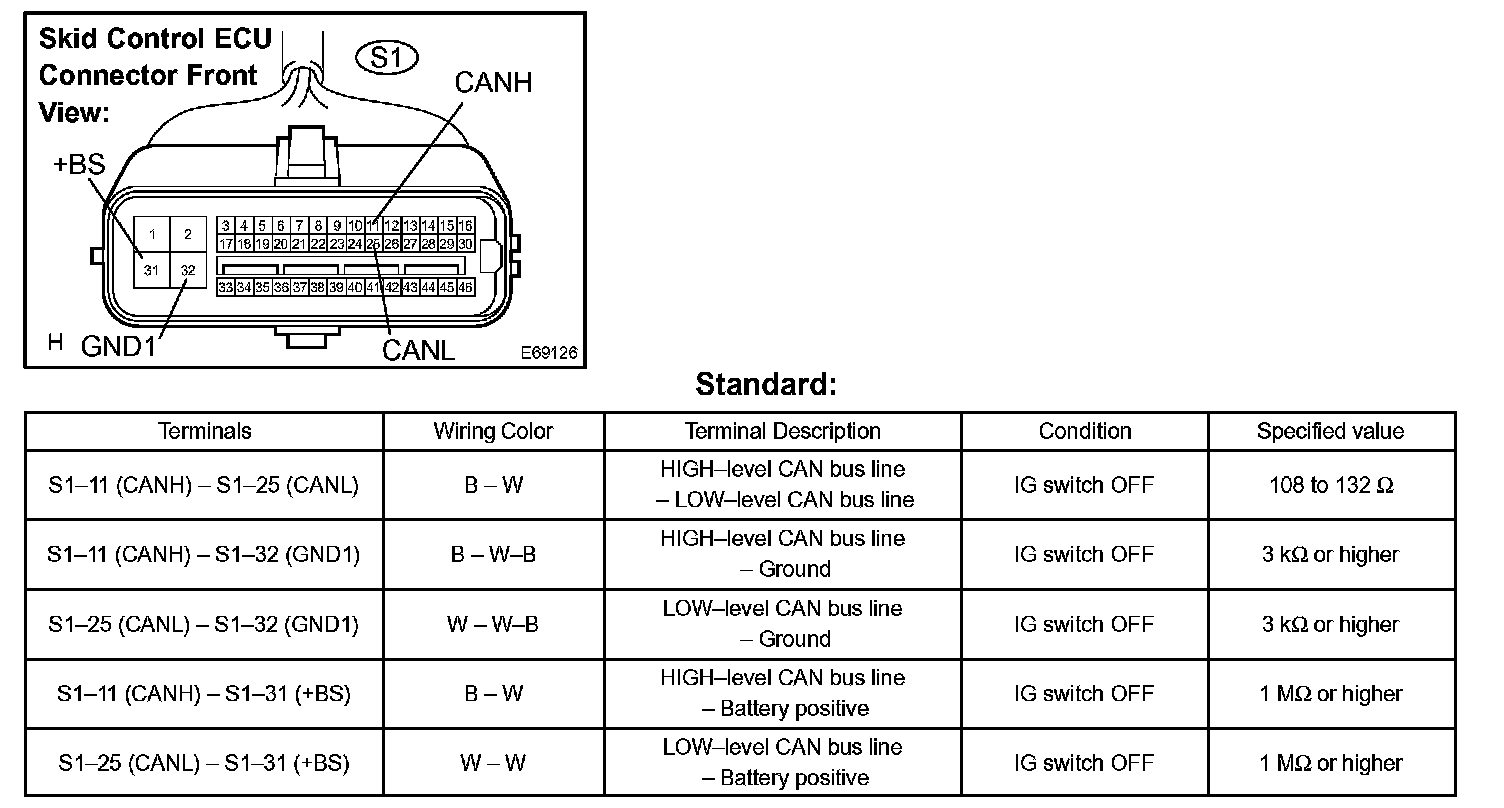 b. Check the skid control ECU harness side connector (S1).