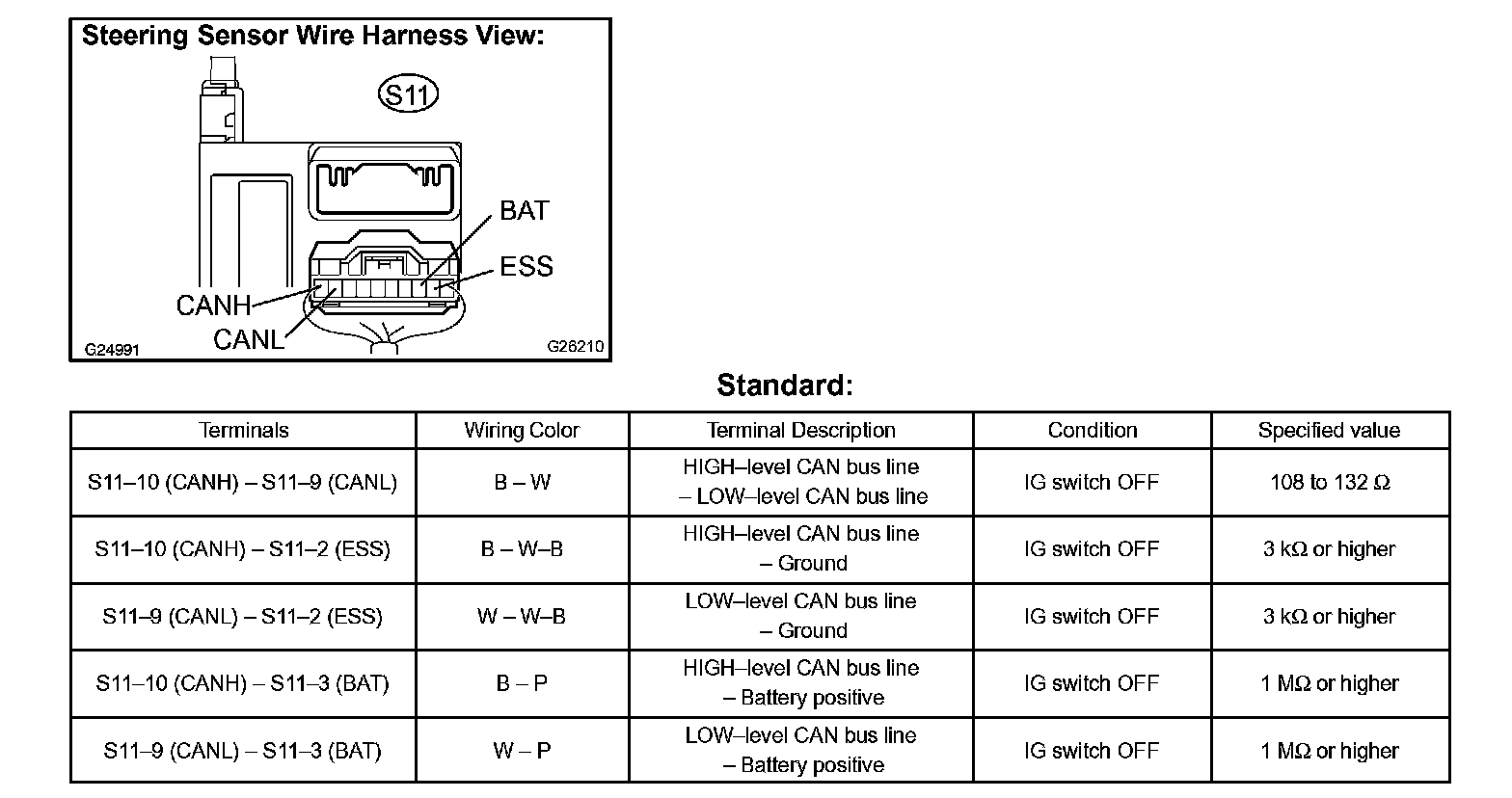 b. Check the harness side connector (S11) of the steering sensor.