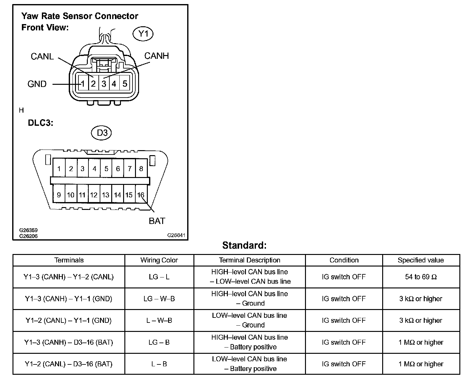 a. Check the yaw rate sensor harness side connector (Y1).