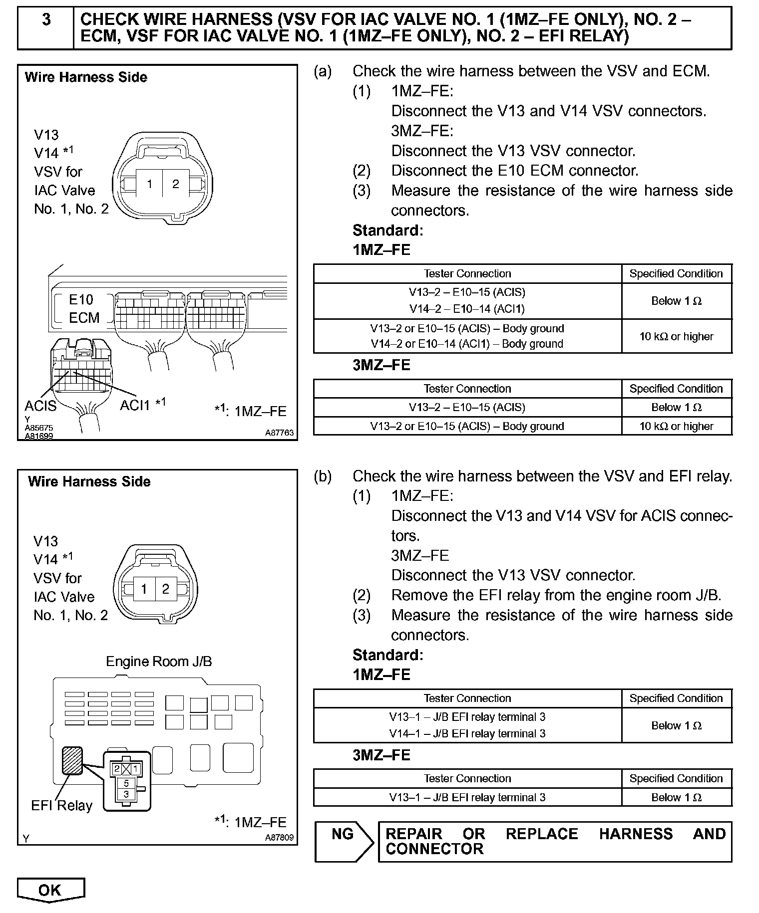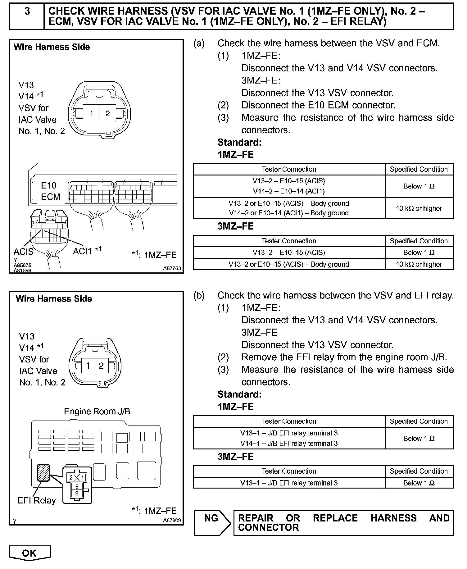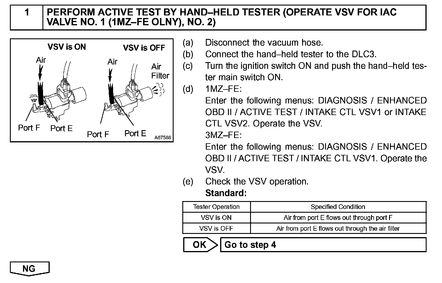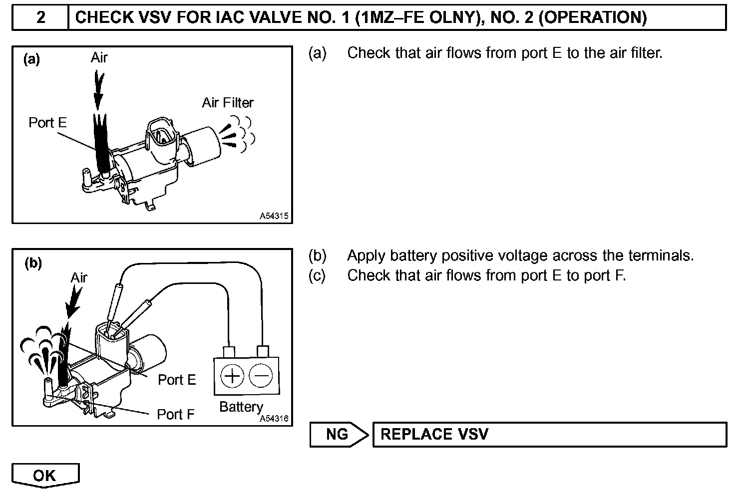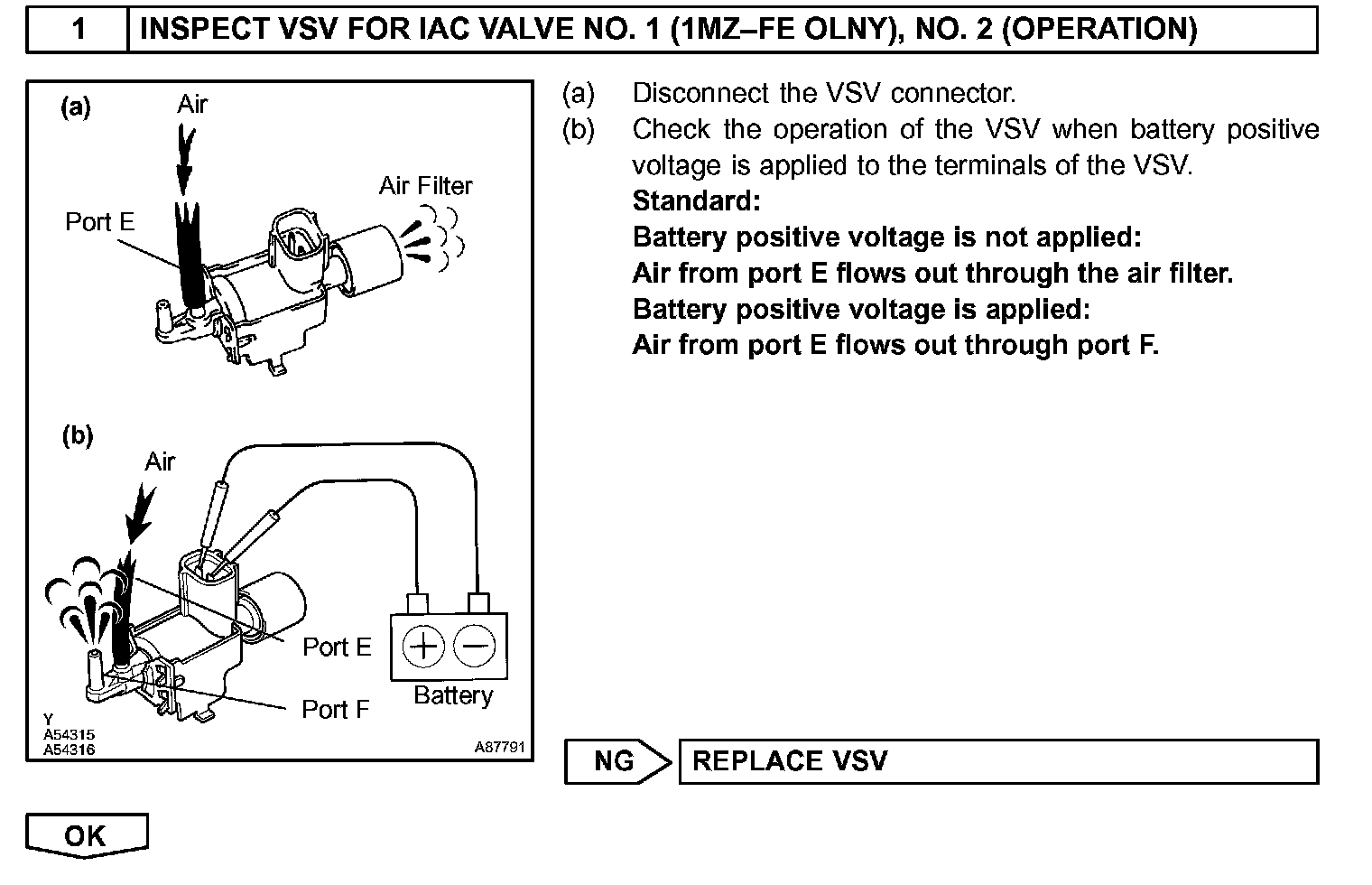 - The 1MZFE engine has 2 VSVs (No.1 and No.2)