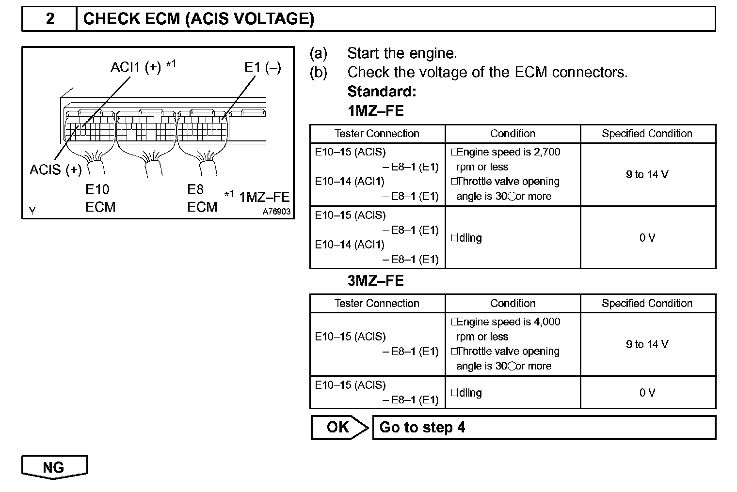- The 3MZFE engine has a VSV (No.1 only) ACIS stands for "Acoustic Control Induction System".