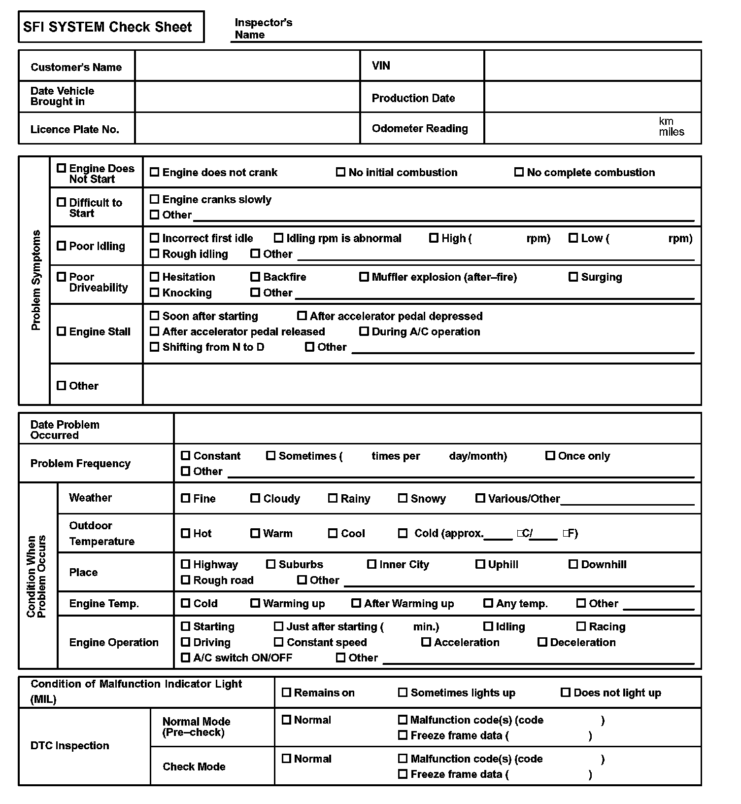 SFI System Check Sheet: