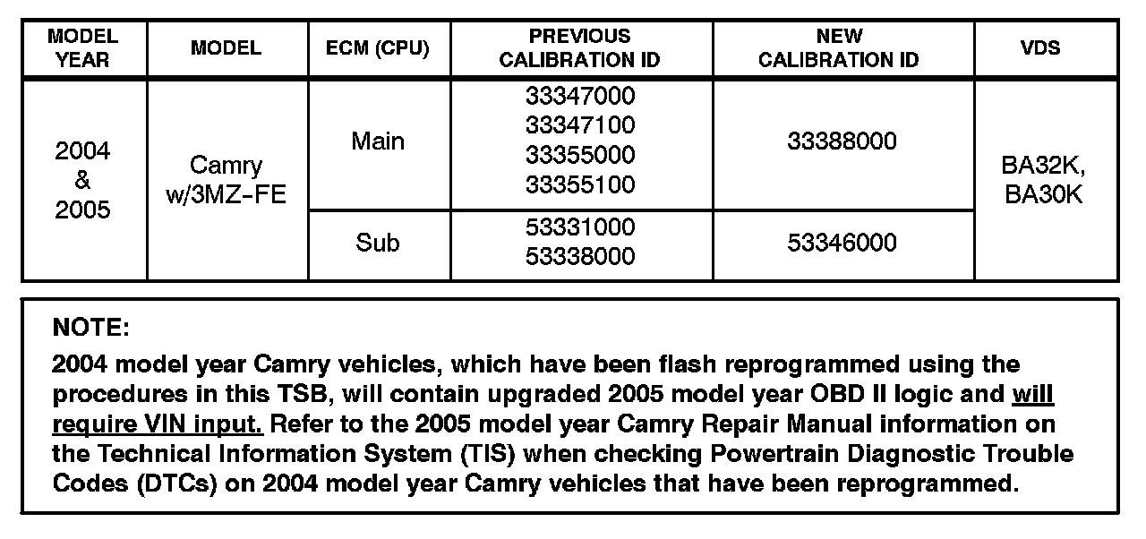 2. Follow the procedures outlined in Toyota TSB No. SS002-01, "ECU Flash Reprogramming Process," and flash the ECM (PCM) with new calibration file update.
