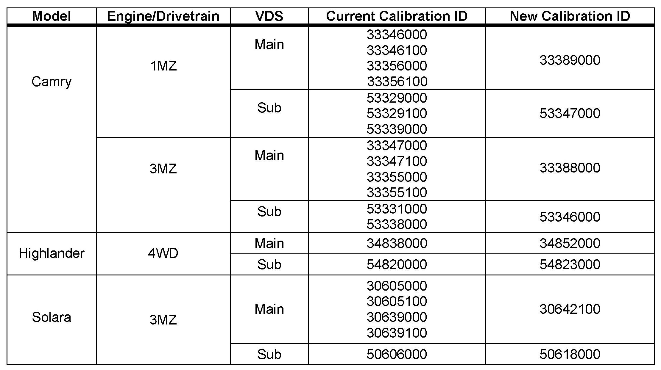 - Although the calibration description in the Calibration Update Wizard and on the Diagnostic Tester reads "04 (and applicable model), these calibrations apply to 2004 and 2005 model year vehicles produced before the Production Change Effective VINs shown in this TSB.