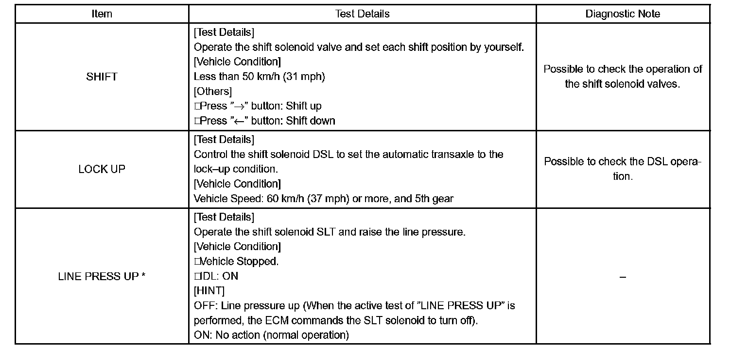 *: LINE PRESS UP in the ACTIVE TEST is performed to check the line pressure changes by connecting the SST to the automatic transaxle, which is used in the HYDRAULIC TEST as well.