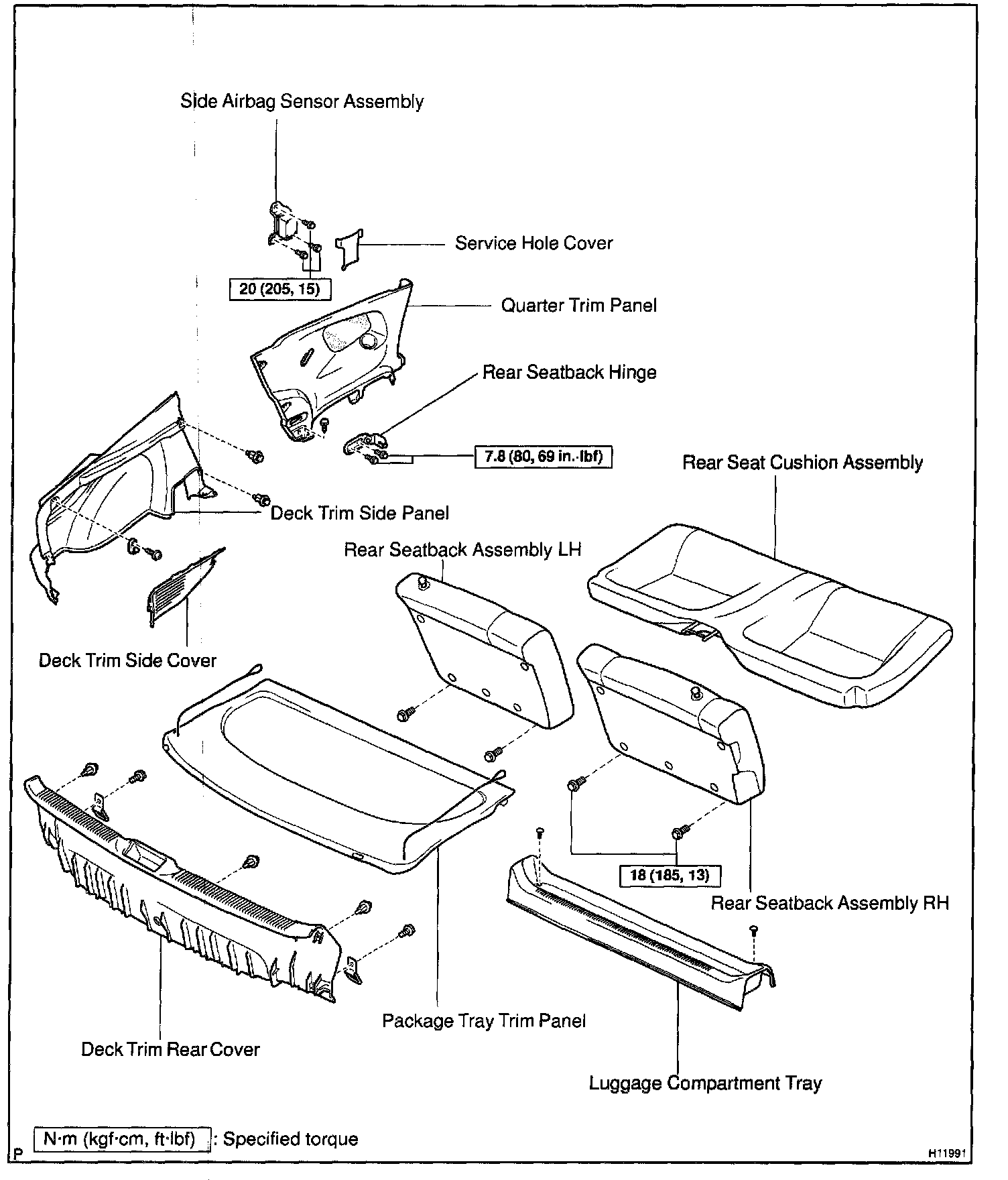 Torque: 18 N.m (185 kgf.cm, 13 ft.lbf)