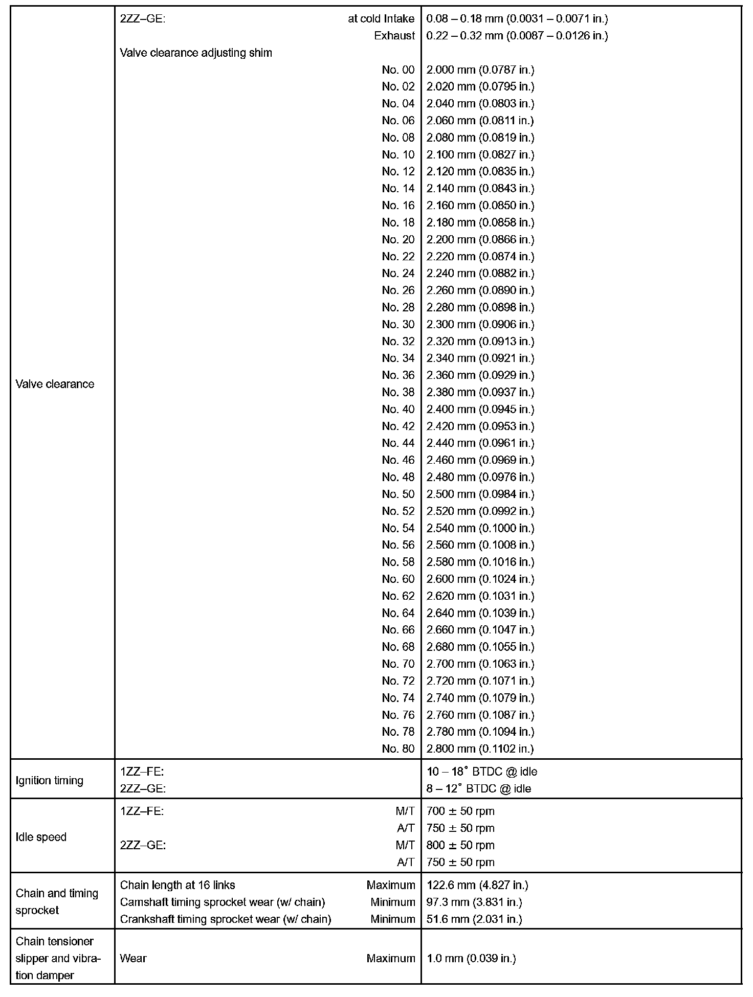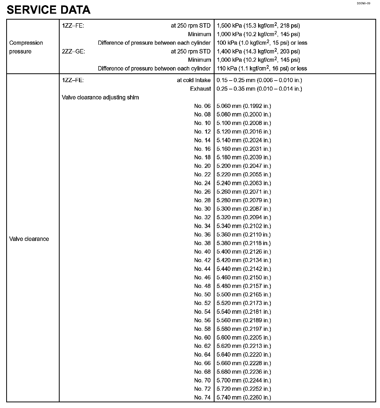 Engine Mechanical - Service Data Part 2: