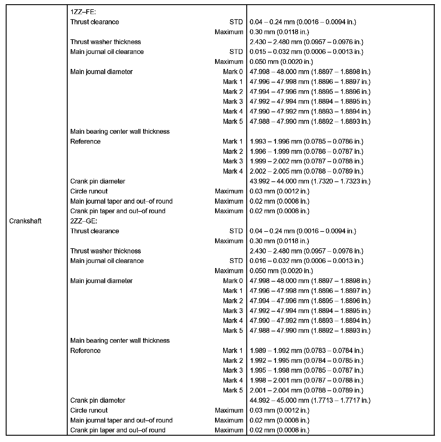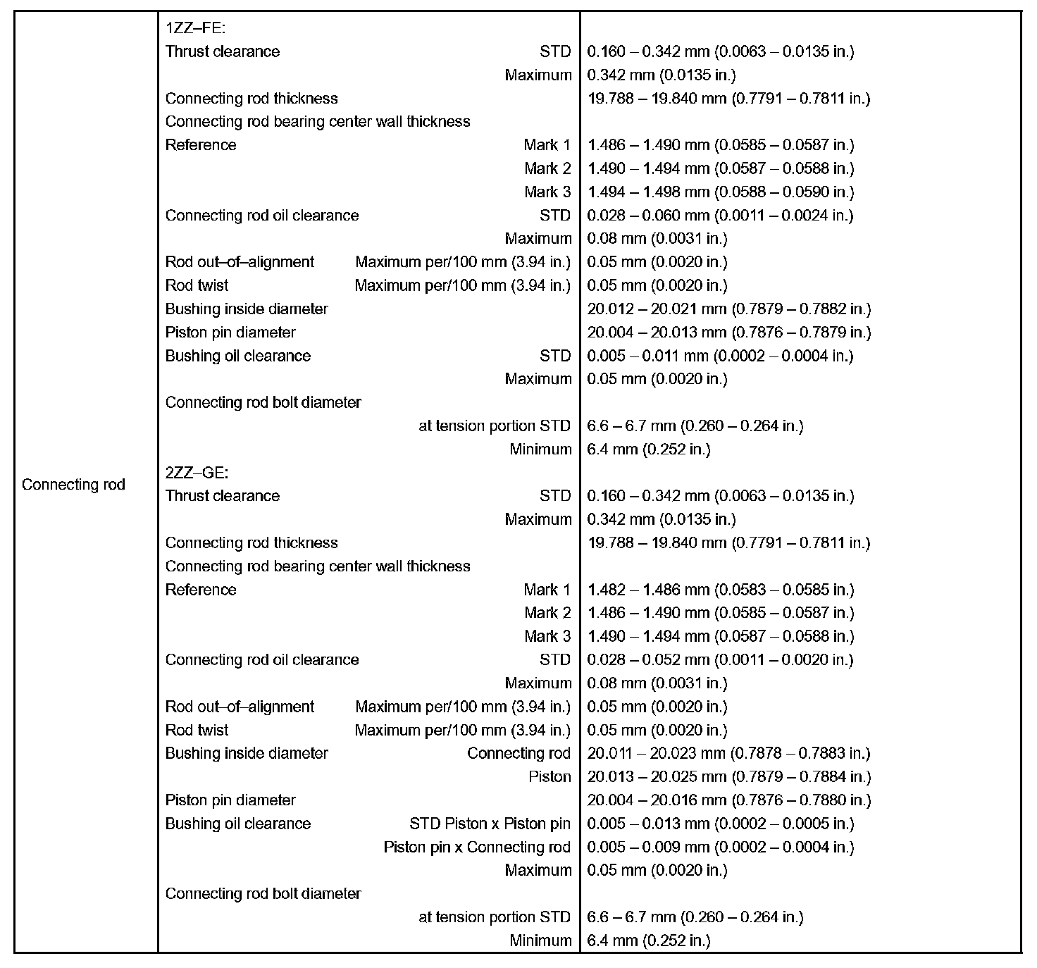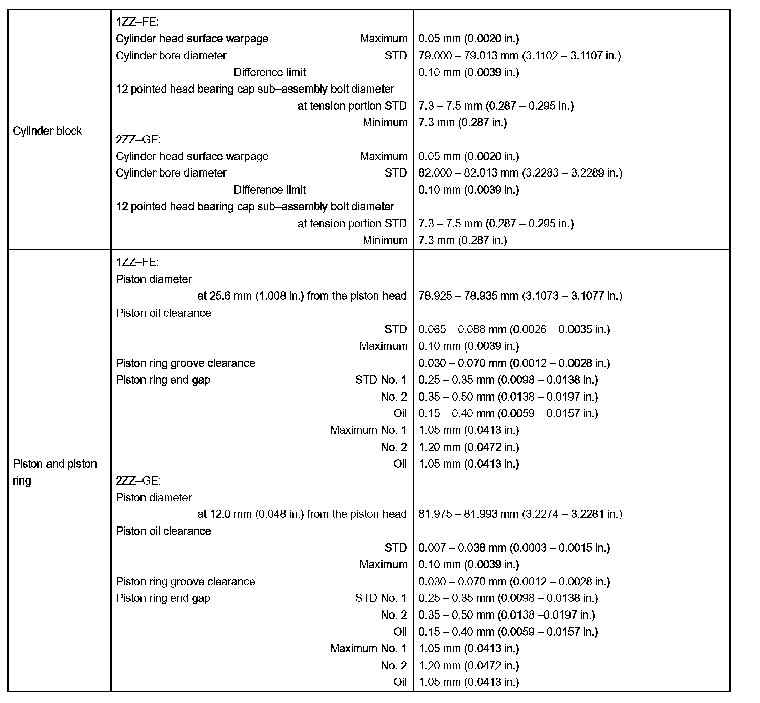 Engine Mechanical - Service Data Part 7: