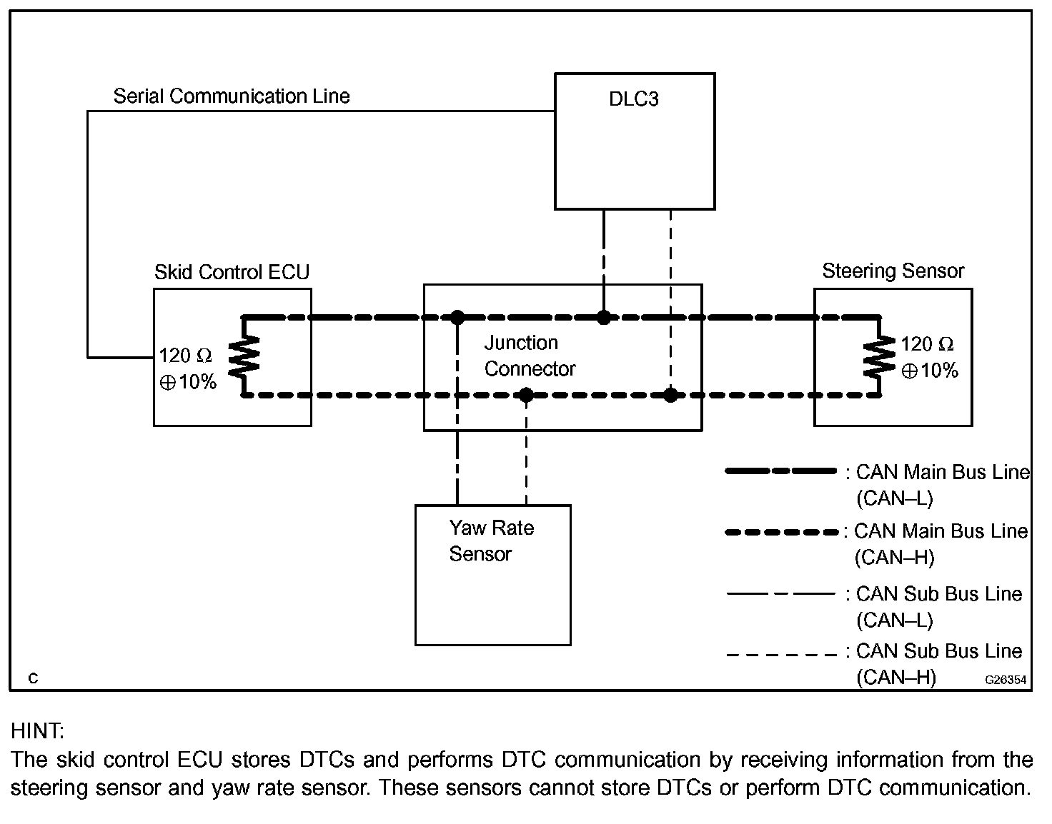 c. The CAN communication system cannot detect trouble in the DLC3 sub bus line even though the DLC3 is also connected to the CAN communication system.