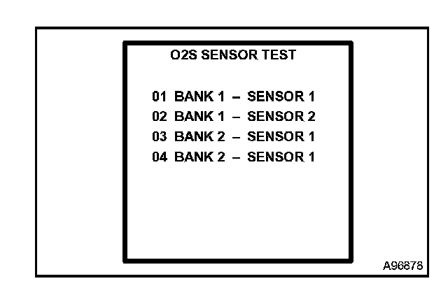 h. Select the desired HO2 sensor from the list and press the ENTER button (a screen such as that shown on the left appears).