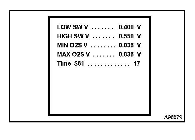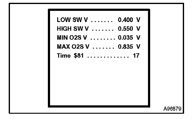 If a Test Value is outside the standard range, this indicates that the HO2 sensor is malfunctioning. If a Test Value is on the borderline of the standard level, any malfunctions may be concealed in the HO2 sensor.