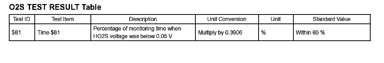 - Specifics of each Test Item, Description, Unit Conversion and Standard Value are descried in the paragraph titled "O2S TEST RESULT" in each DTC section relating to the HO2 sensor, such as P0130, P0133 and P0136.