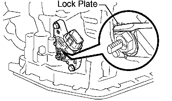 c. Pry out the lock plate and remove the manual valve shaft nut.
