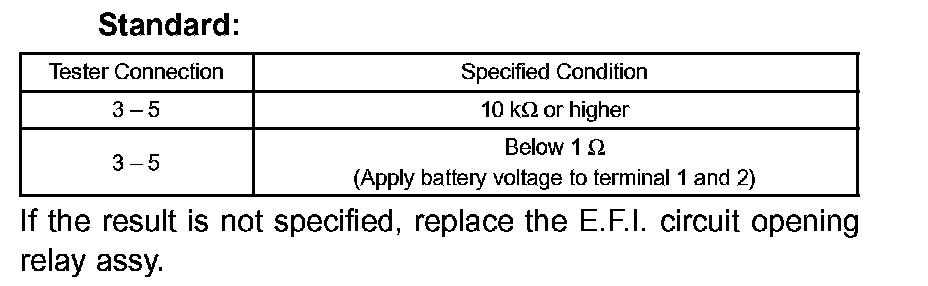 INSPECT E.F.I. CIRCUIT OPENING RELAY ASSY