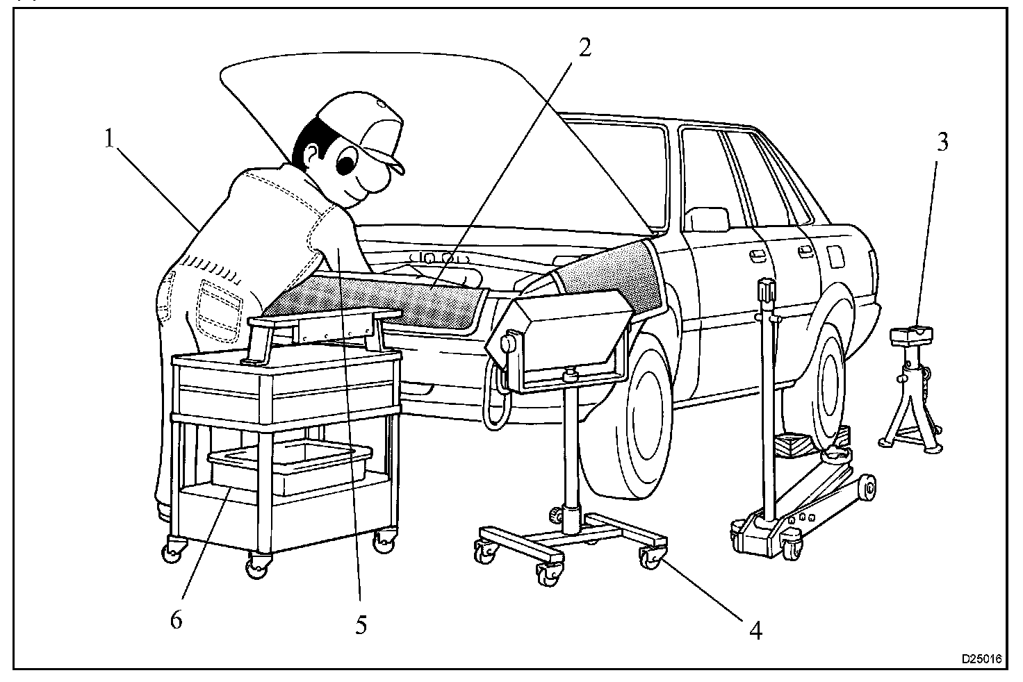 1. Care must be taken when jacking up and supporting the vehicle. Be sure to lift and support the vehicle at the proper locations.