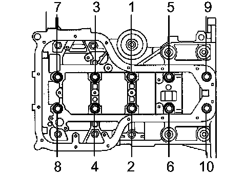 Retighten each bearing cap bolts by 45° in two passes, in the numerical order shown.