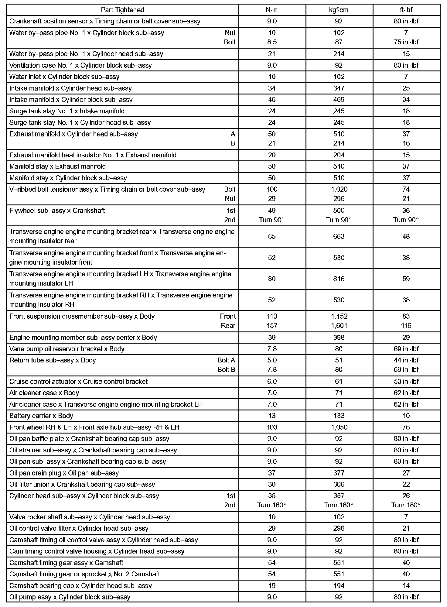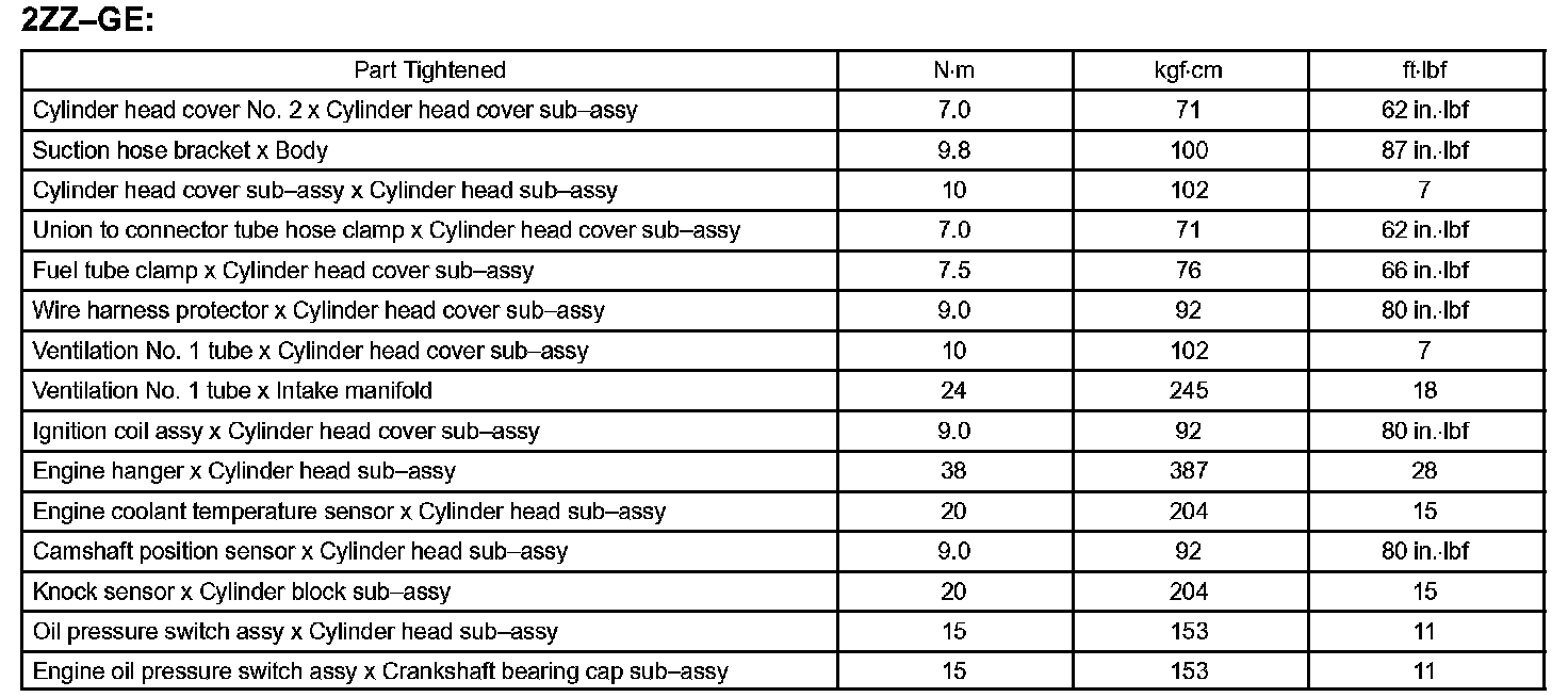 Engine Mechanical - Torque Specification Part 3: