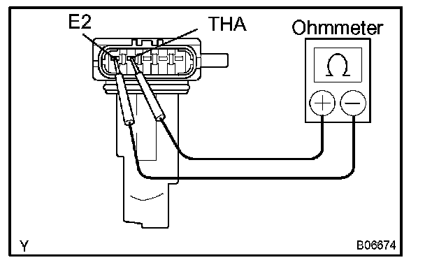 Using an ohmmeter, measure the resistance between terminals THA and E2.