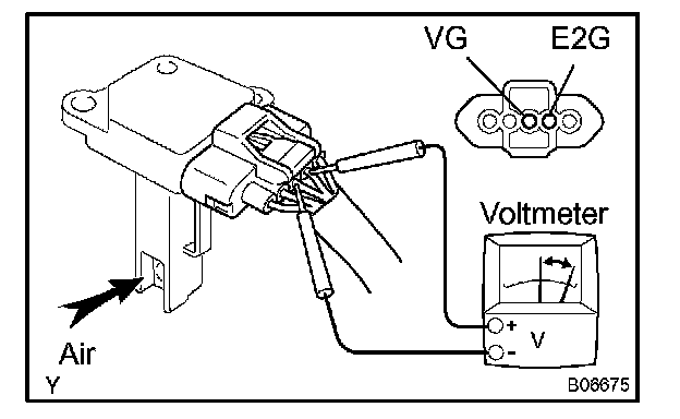 c. Using a voltmeter, connect the positive (+) tester probe to terminal VG, and negative (-) tester probe to terminal E2G.