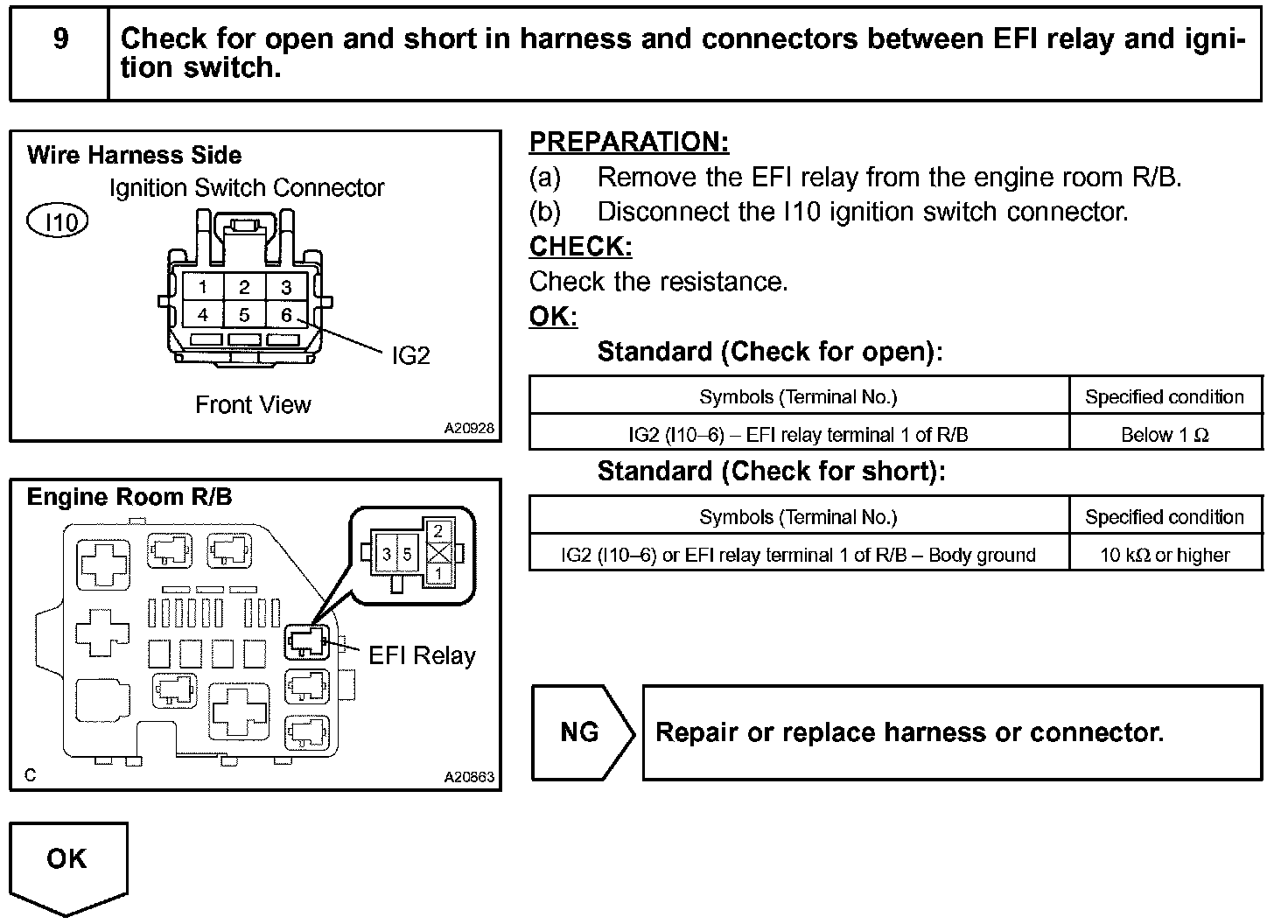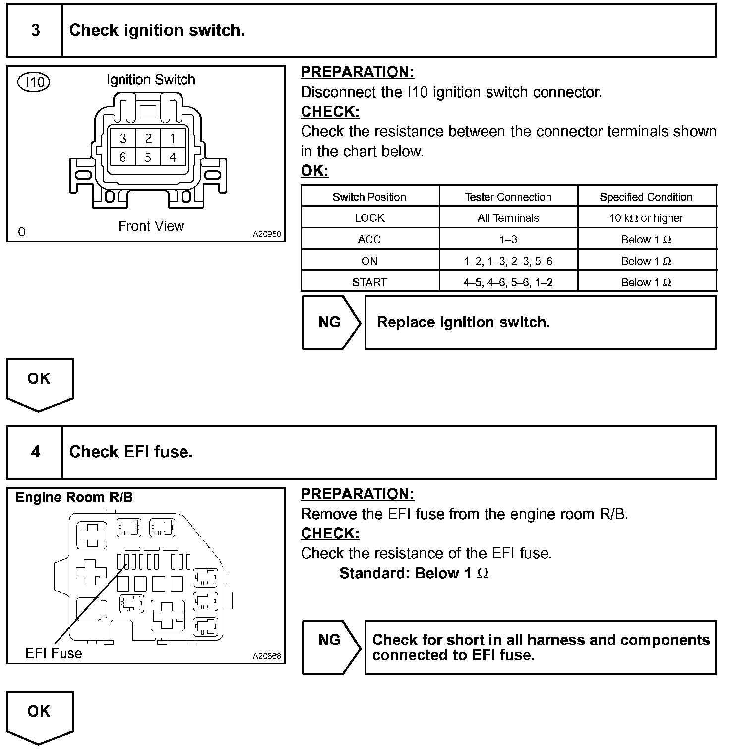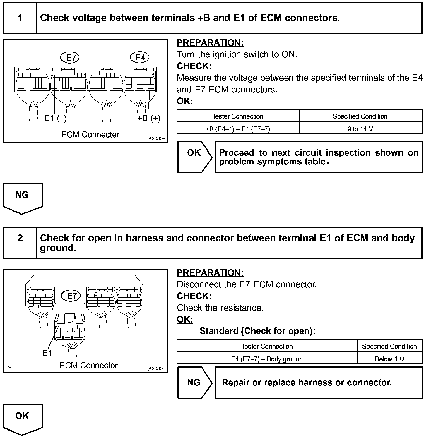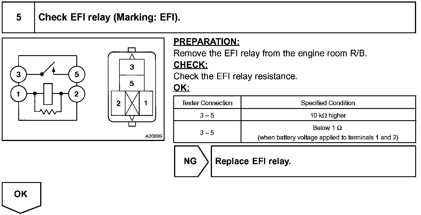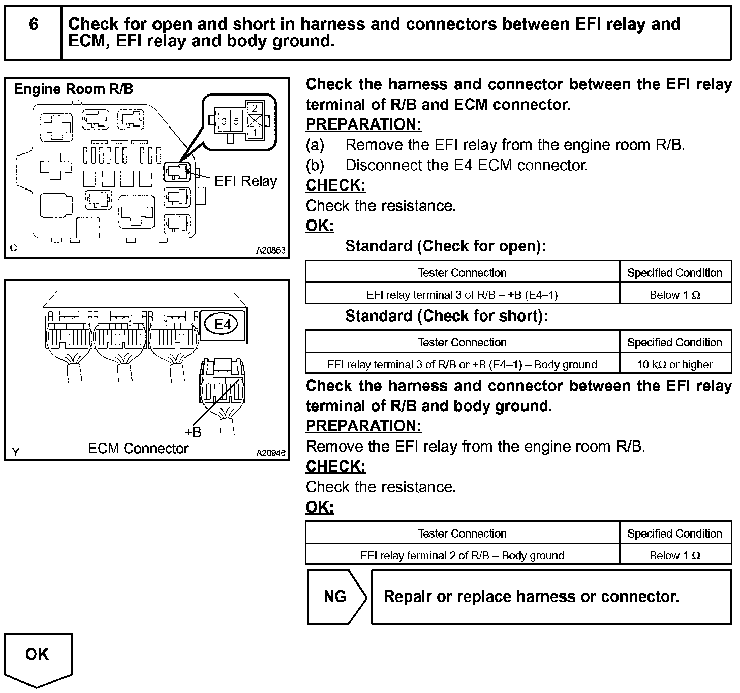 This signal causes current to flow to the coil, closing the contacts of the EFI relay and supplying power to terminal +B of the ECM.