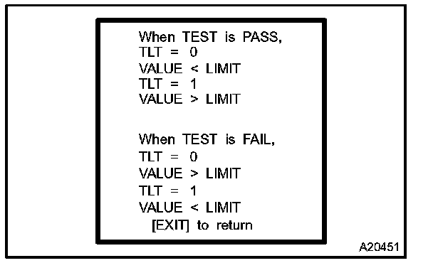 If a Test Value is outside the Test Limit, this indicates that the Test Item is malfunctioning. If a Test Value is on the borderline of the Test Limit, any malfunctions may be concealed in the Test Item.