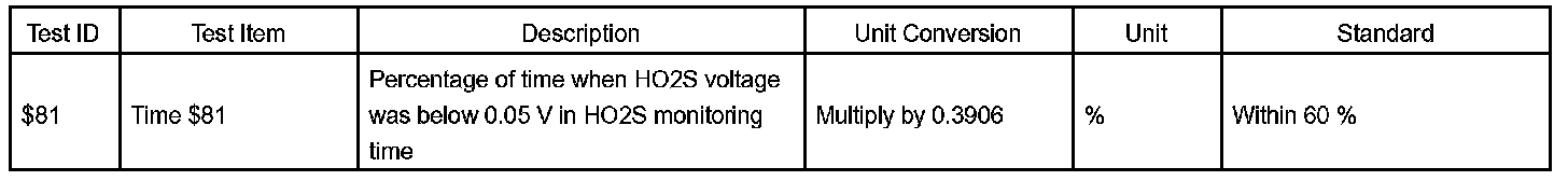 O2S Test Result Table:
