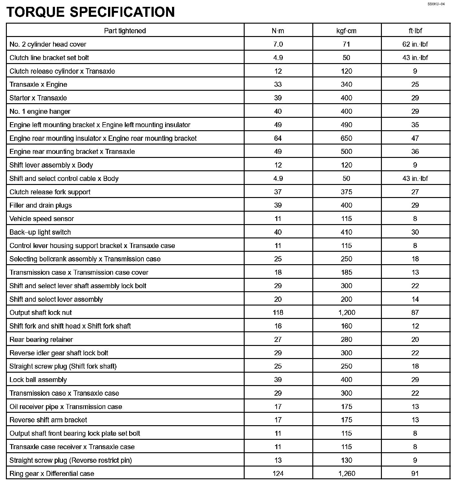 Manual Transaxle - Torque Specification:
