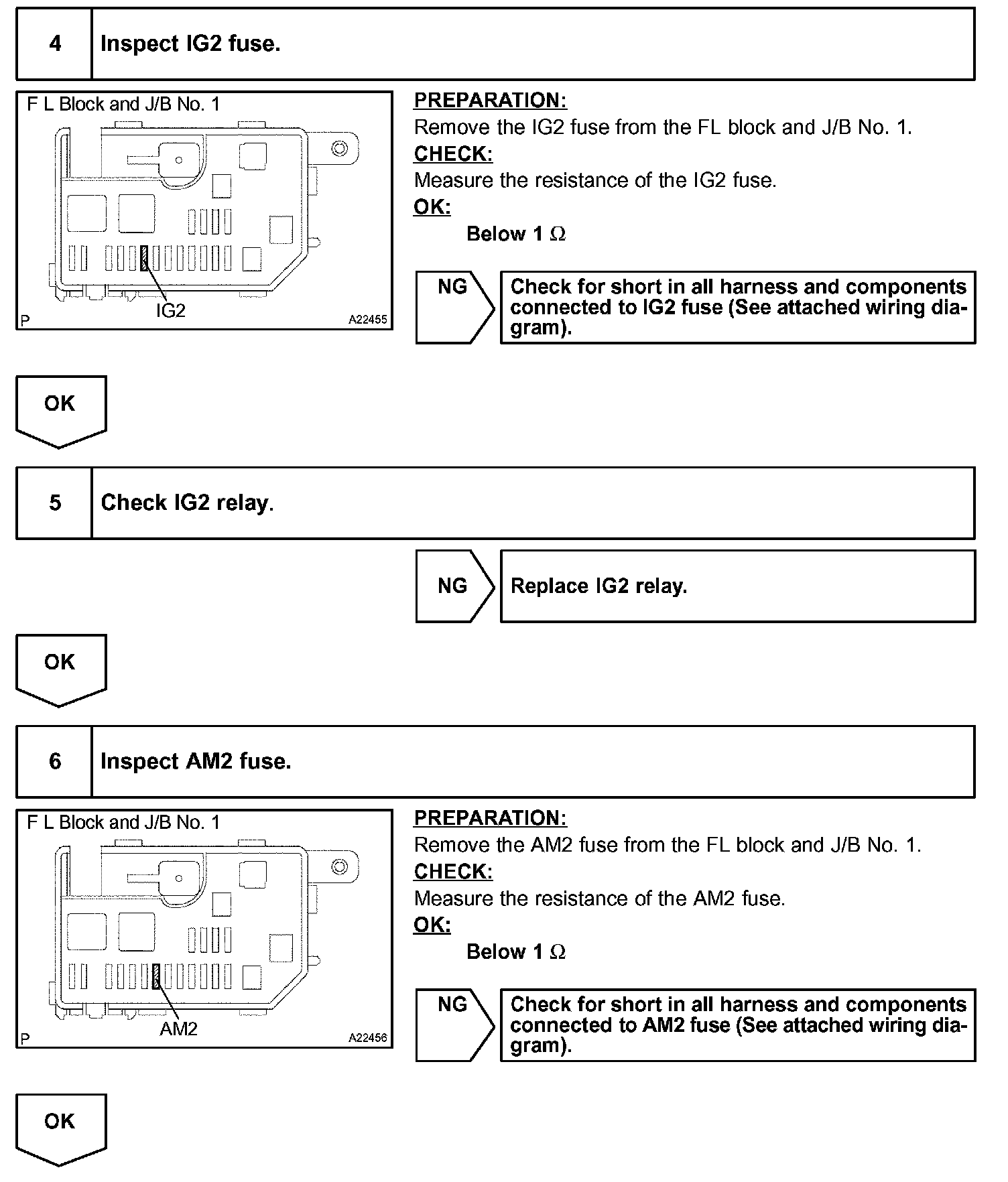 When the ignition switch is turned ON, battery positive voltage is applied to the IG2 relay and terminal IGSW of the ECM. Then the EFI main relay (Marking: EFI MAIN) control circuit in the ECM sends a signal to terminal MREL of the ECM, switching on the EFI main relay.