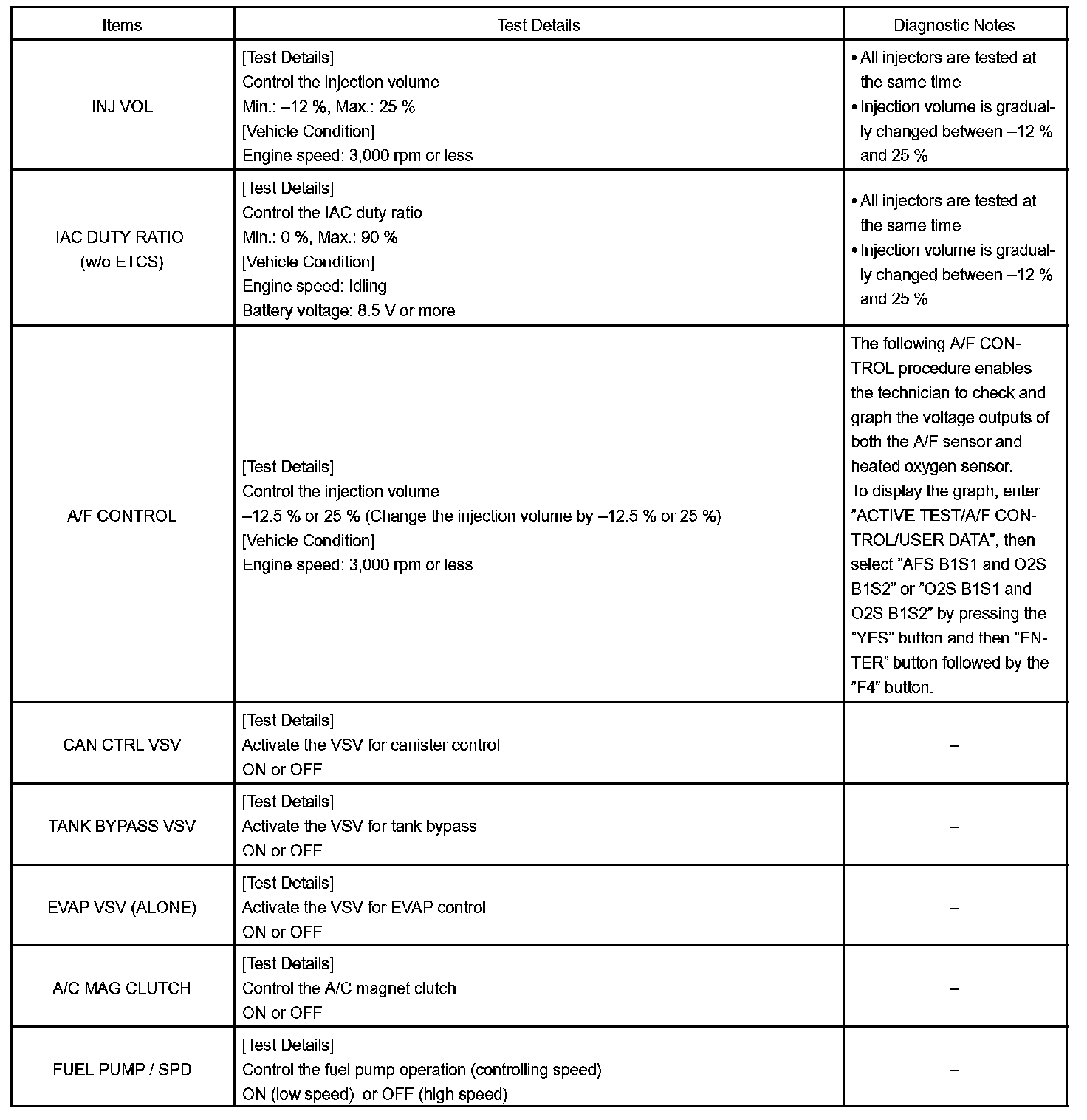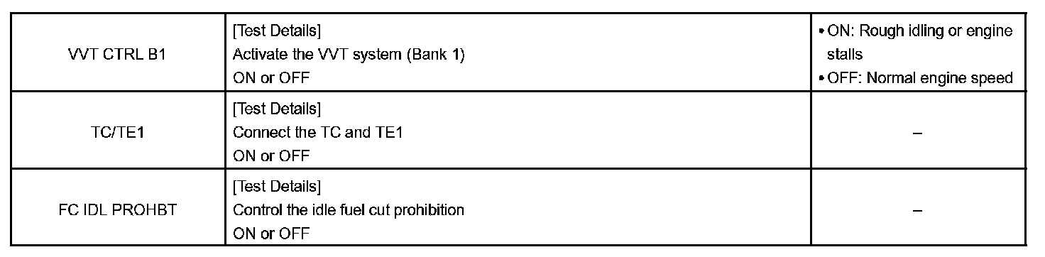 e. Perform the ACTIVE TEST by referring to the table.