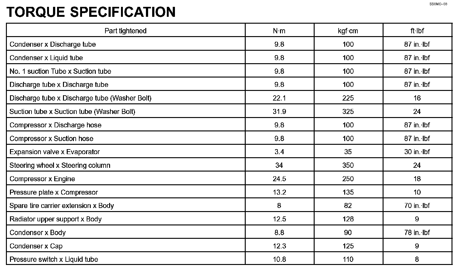 Air Conditioning - Torque Specification:
