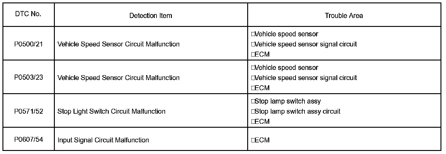 DIAGNOSTIC TROUBLE CODE CHARTP0500/21 - P0607/54: