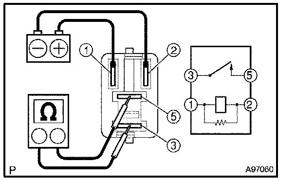 1. Using an ohmmeter, measure the resistance between the terminals.
