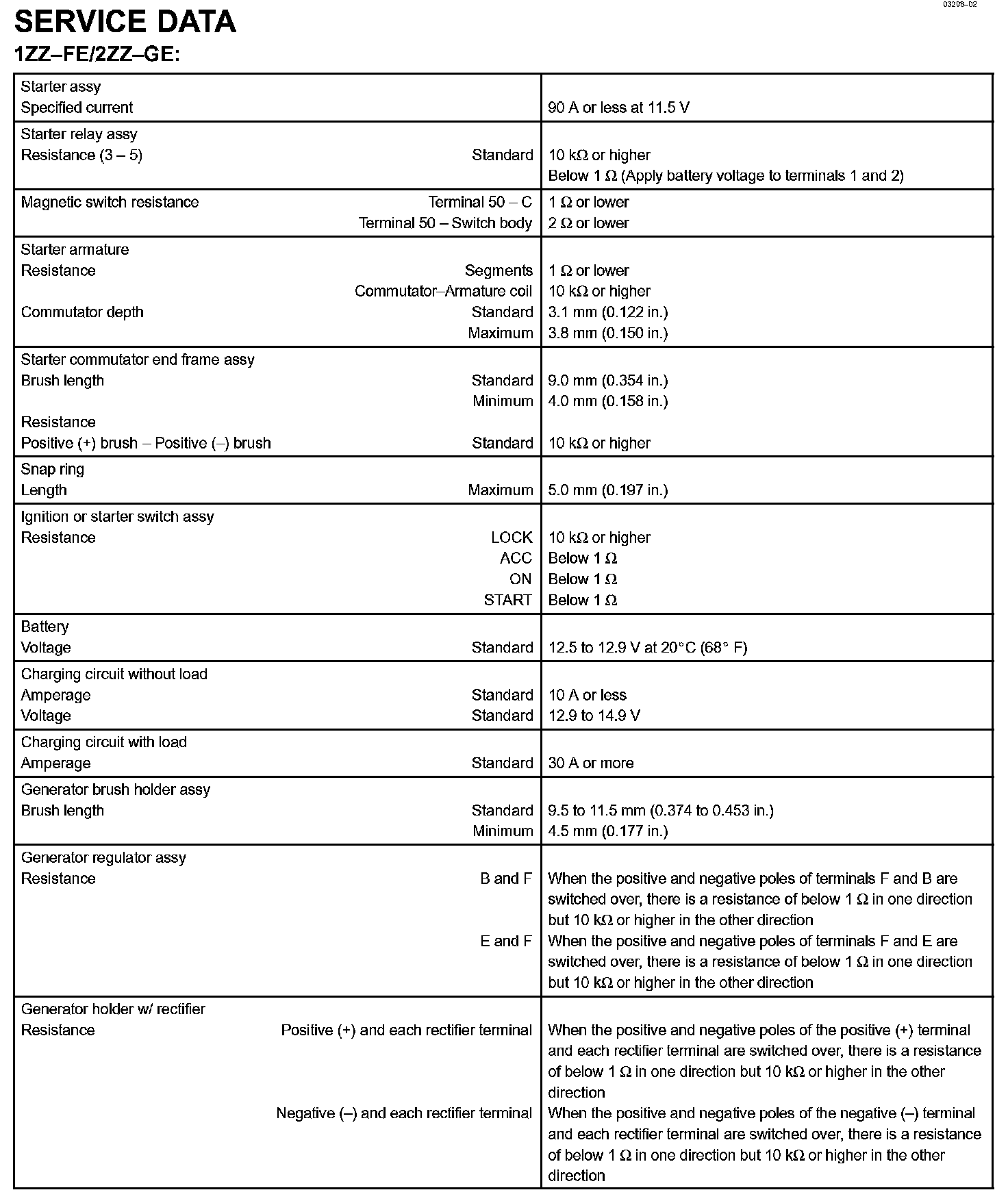 Starting & Charging - Service Data Part 1:
