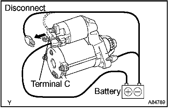 1. Disconnect the negative (-) lead from terminal C. Check that the clutch pinion gear remains extended.
