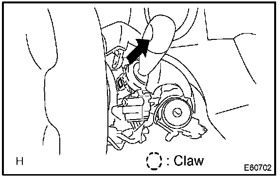 b. Release the claw and pull out the windshield wiper switch assembly as shown in the illustration.