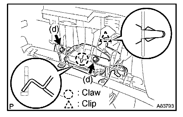 b. Deform the upper part of the glove compartment door assy to release the stoppers.
